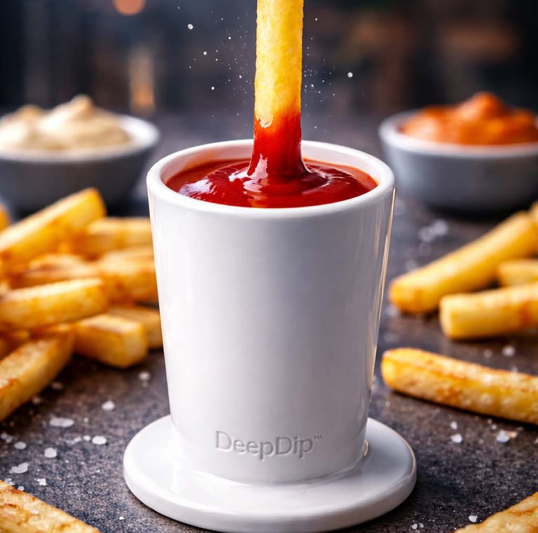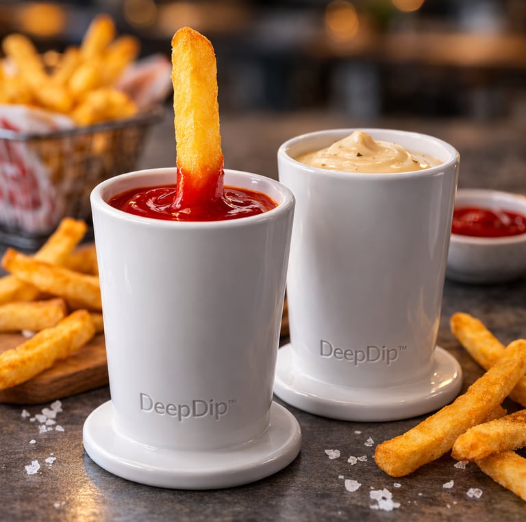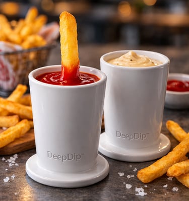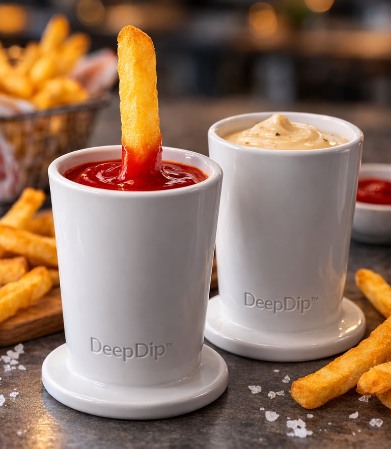 DeepDip is a ceramic dipping cup designed for fries.