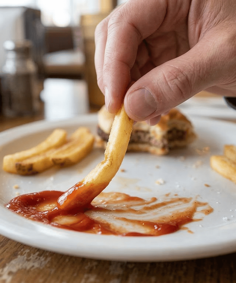 Straight vertical walls let you dunk fries fully, reaching every last drop of sauce.